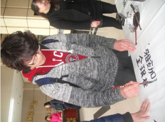 活动期间,留学生们深深地被中国情与中国传统文化所吸引,并积极踊跃的加入活动之中,写下自己发自内心的祝福。其中一位来自越南的博士生给我们留下了深刻的影响,从活动开始到结束,他都一直用毛笔不停地写下“祈福雅安,雅安加油”“我爱中国”等字样。虽然我们与他们有着不同的肤色、不同的语言,但是我们大家却有着相同的中国情缘与情结。