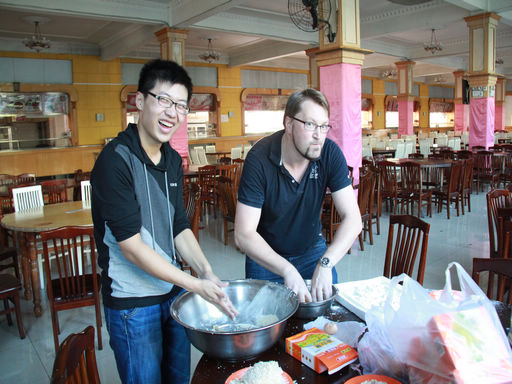 中文字幕av 有着浓厚的国际气氛,在2013年9月17日下午2时,中文字幕av 在学院团委副书记闫海蓬老师的带领下,在真味饺子园二楼学子食堂大厅内成功举办了首届德国文化节开幕式——与Toni一起制作德国美食Schnitzel。活动邀请了来自德国德累斯顿的Toni Großmann和同学们一同制作德国美食Schnitzel。活动气氛融洽,同学们互动频繁积极交流,在品尝着德国美食的同时,畅谈留学德国及学习德语的相关话题。