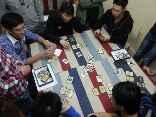 本次友谊赛于18:00正式开始,共有四组选手参加。工作人员提前到场,进行场地布置,对战分组等比赛的准备工作,选手们陆续到场。随着主持人宣布比赛开始,选手们正式进入对战状态。比赛的过程中由裁判发牌,选手之间不得有任何形式的交流,这更加考验同学们团队配合意识,队友们心有灵犀的打出各种组合技能,才能争取最后的胜出。经过两个多小时的厮杀,最终决出本次比赛的冠军,我们为冠军队伍的三位同学颁发了纪念品作为奖励。