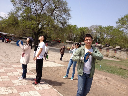 这一天风和日丽,早上9点钟,同学们来到防洪纪念塔,乘船渡过松花江,来到太阳岛江边的一片空地上,开始自己绕制线轴并组装风筝,为厉行节约,所有风筝都是团支部同学自己利用废物制作的。风筝组装好后,同学们开始风筝的放飞活动。由于江边的风不是很大,开始同学们放飞很困难,在经过了多次的尝试后,大家终于找到放飞风筝的正确方法,随后,在同学们的互帮互助下,一个个五颜六色的风筝飞上了天空,大家也为此高兴不已。看着天空飞翔的风筝,欣赏着美丽的江景,大家仿佛回到了美好的童年,同时也增进了同学们对大自然的热爱。