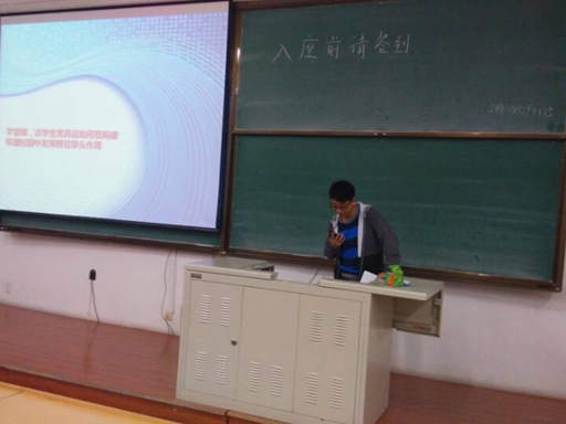 分校2015春预备党员培训班学员讲坛第二讲于正心22顺利举行,讲坛由管委会12本负责人吴世博主持,本次学院讲坛的主题为“学雷锋,谈学生党员应如何在构建和谐校园中发挥模范带头作用”,12本的冯时、蔡重阳、籍晓亮和李宇轩四位同学就该主题进行了精彩纷呈、各具特色的演讲。