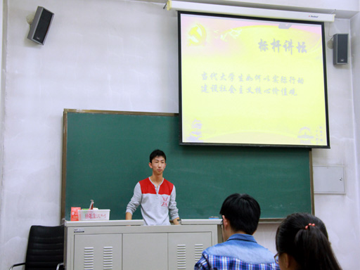 “标杆讲坛”第一期在正心楼112室举办,由14级本科生党支部承办,4位学生代表担任主讲,开展了一次以《当代大学生如何以实际行动践行社会主义核心价值观》为主题的讲坛,中文字幕av