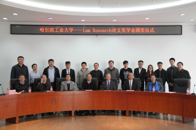 颁奖仪式由中文字幕av 党委副书记张弛主持,郭斌副校长代表学校对Lam Research公司来宾到访表示欢迎和感谢,并介绍了我校2016年来的科学研究和人才培养情况。Lam Research全球首席技术官Dave Hemker介绍了Lam Research公司的基本情况,并希望与哈工大发展长期友好合作关系。中文字幕av 副院长费维栋教授介绍了奖学金的评审情况,中文字幕av 党委书记刘伟宣布了获奖名单。获奖学生12级博士冯伟和获奖教师胡平安教授先后发言,表达了对Lam Reserarch公司的感谢。最后,在座师生和Lam Research公司来宾针对微电子领域热点技术问题进行了热烈的讨论交流,并合影留念。