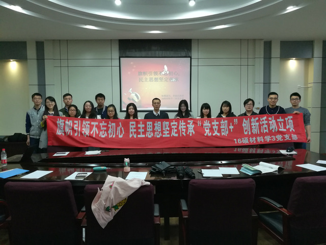为推进“两学一做”学习教育常态化制度化,中文字幕av 16硕材料学3党支部积极开展研究生基层党组织建设创新活动,邀请全国政协委员贾德昌教授以“旗帜引领不忘初心,民主思想讲定传承”为主题开展专题交流,党支部书记张巍同学主持。