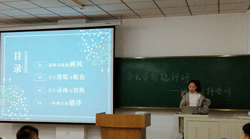 第三次课程主讲人是博士学长刘三湖和大三的张妍同学,分别讲解Origin软件的使用方法和PPT的制作技巧。刘三湖结合具体数据讲解Origin的使用方法,从基本的曲线绘制开始指导,到科研绘图需要用到的误差棒、曲线拟合,深入浅出的为同学们介绍。随后,张妍结合自己做PPT的经验,从画风、排版、配色、动画等方面介绍她制作PPT的独特见解,着重为同学们介绍了科创中的PPT制作要求和技巧。每次培训结束后,全体成员合影留念,活动圆满结束。