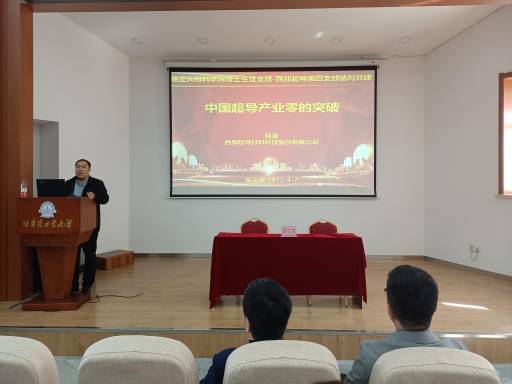 最后西部超导材料科技股份有限公司第四党支部书记郭强同志作主题报告——“中国超导产业零的突破”。重点讲述了中国超导产业从无到有的崛起历程,并以“自信人生二百年,会当水击三千里”来劝勉博士生同学要珍惜时间,勇于拼搏,追求卓越。郭强同志表示希望通过校企党支部共建平台来增进彼此之间的交流,希望工大学子能同他一道努力拼搏、科研报国、服务社会!