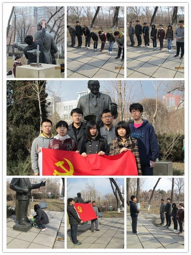同样是20日下午,材科党支部的预备党员同学们来到了哈工大科技园马祖光院士的全身雕像前,准备祭奠这位伟大的学者、院士,这位杰出的共产党员。来到这里,大家首先组织清扫马祖光院士塑像,同学们认真擦拭着雕像的每一个部位,一举一动都带着对马祖光教授的尊敬与怀念之情。认真清扫过雕像后,大家整齐地站在雕像前三鞠躬并集体默哀一分钟以寄托对马院士的哀思。默哀结束后,预备党员代表向雕像敬献了鲜花,10本材科党支部书记马靖博向大家讲述了马祖光院士的生平事迹与成就。最后大家在一起重温了入党誓词并怀中无比崇敬与怀念的心情与院士雕像合影留念。