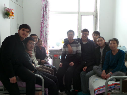 祥源老年公寓位于康安路22-9-11号,是一家助老家庭连锁机构所建立的助老单位,里面住着数十位老人。同学们早上八点半到了祥源老年公寓后就主动承担起了打扫卫生的工作,扫地,用抹布蘸肥皂水认真擦洗窗台、床头柜和桌椅。有些老人还未起床,所以大家都静悄悄地打扫,若是刚好碰到老人起床,大家就会主动问候并倒上热水供老人饮用。大约半个小时后,卫生已经基本打扫完毕,除开几个到门外扫雪的同学外,我们都步入了老人们的居室陪老人聊天。大家或是讲起自己的学校、家乡,或是讲笑话逗老人开心,又或是与老人聊共同看过的电视剧。而爷爷奶奶们也为我们讲述了他们年轻的故事和人生的感慨。在这一片其乐融融中,时间过得飞快,只有闪烁的相机忠实地记录下了阵阵欢声笑语。