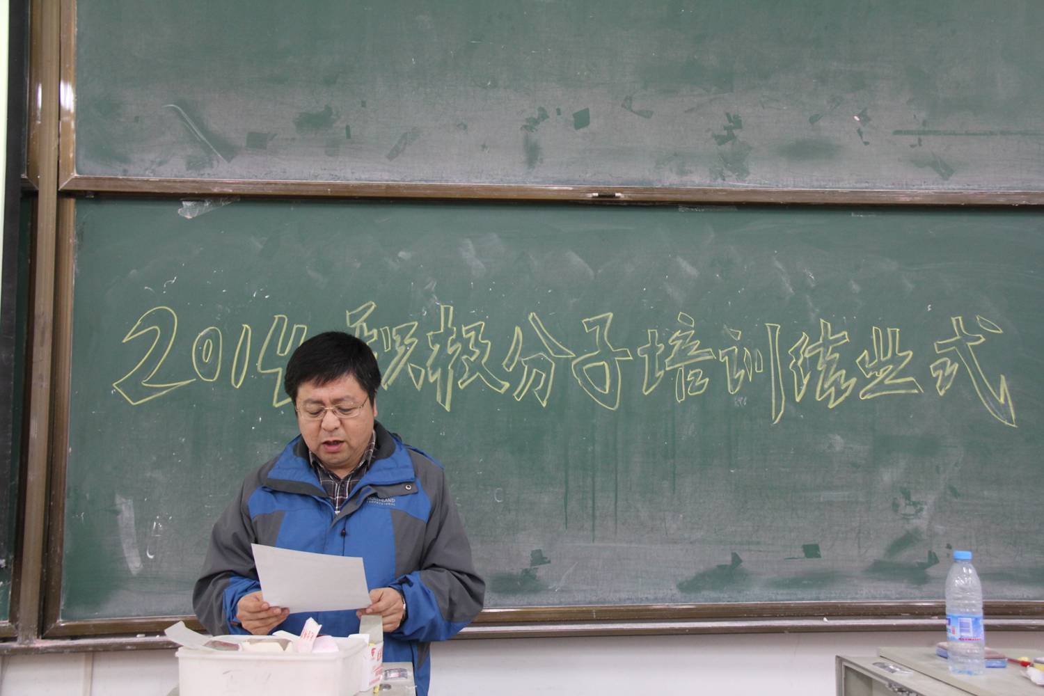 分校2014年入党积极分子培训班结业式在正心12教室举行。院党委副书记张弛老师,院博士生协理员、学生党总支副书记秦少华老师,院学工秘书、11本年级主任毕磊老师,院团委副书记、12本年级主任闫海鹏老师参加了结业式。结业式由学员管理委员会主席彭博同学主持。