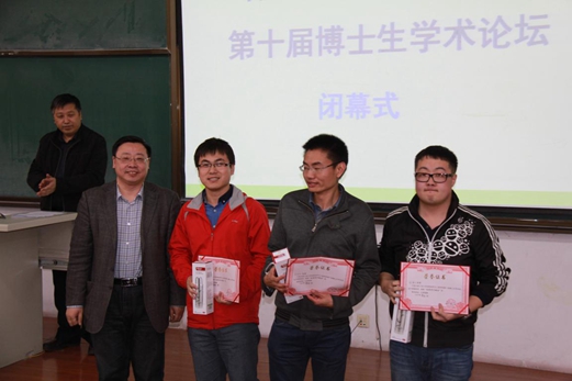 副院长费维栋教授主持闭幕式。他代表大会组委会对学校以及学院的各位领导、参加论坛的各位评审专家、与会的博士生同学以及组委会的各位工作人员表示衷心的感谢。为激励优秀,大会还为各位获得“优秀学术报告”奖的博士生举行了隆重的颁奖仪式。之后,各分会场主席对各会场的工作进行了精彩点评。王金忠教授为学生论文发表和论坛学生报告提交提出了建议;朱景川教授指出博士生研究应该注重实验和基础理论的有机结合,并建议论坛的报告形式应各课题组打乱混合,这样有利于跨学科交流;田艳红教授充分强调了导师指导的重要性,并对朱景川教授的建议表示赞同;孔凡涛教授对第三分论坛的交叉学科论坛取得的效果给予了高度肯定;姜龙涛教授对学生们的工作给予了充分肯定,并鼓励博士生学习先进研究方法和分析手段。