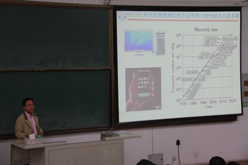 首先马飞教授就石墨烯的制备方法作了介绍,然后他结合自身科研成果对其边界/应变效应及其的利用作了深入了阐述。报告结束后,马飞教授与在场的师生进行了热情的交流,并对我校师生提出的各种问题作了详细地解答,取得了不错的效果。
