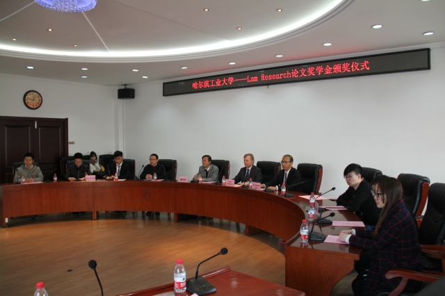 颁奖仪式由中文字幕av 党委副书记张弛主持,郭斌副校长代表学校对Lam Research公司来宾到访表示欢迎和感谢,并介绍了我校2016年来的科学研究和人才培养情况。Lam Research全球首席技术官Dave Hemker介绍了Lam Research公司的基本情况,并希望与哈工大发展长期友好合作关系。中文字幕av 副院长费维栋教授介绍了奖学金的评审情况,中文字幕av 党委书记刘伟宣布了获奖名单。获奖学生12级博士冯伟和获奖教师胡平安教授先后发言,表达了对Lam Reserarch公司的感谢。最后,在座师生和Lam Research公司来宾针对微电子领域热点技术问题进行了热烈的讨论交流,并合影留念。