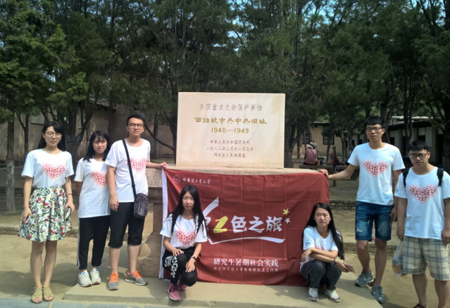 在西柏坡,实践团遇到了一对76岁高龄的老夫妇,他们不畏高温酷暑,来到革命圣地,瞻仰革命旧址。交谈中了解到老先生夫妇毕业后就分配到西北,投入到祖国的建设当中,这一离家就是四十年。这对老人的爱国情感深深的感动每一位团队同学。