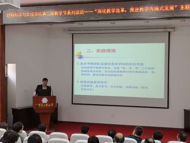 会上,姚可夫教授以《工程材料》精品课程建设为主题,分别从课程体系建设、课程内容建设、课程实验建设、教材建设、授课团队建设等方面阐述了如何构建一门精品课程;杜振民教授从实践教学体系建设、高水平教师队伍建设、课程与教材建设以及如何更好的坚持“以学生为本”的教育理念等方面进行了人才培养体系建设的经验分享。