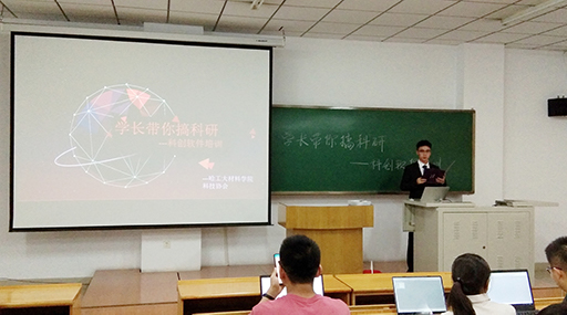 第三次课程主讲人是博士学长刘三湖和大三的张妍同学,分别讲解Origin软件的使用方法和PPT的制作技巧。刘三湖结合具体数据讲解Origin的使用方法,从基本的曲线绘制开始指导,到科研绘图需要用到的误差棒、曲线拟合,深入浅出的为同学们介绍。随后,张妍结合自己做PPT的经验,从画风、排版、配色、动画等方面介绍她制作PPT的独特见解,着重为同学们介绍了科创中的PPT制作要求和技巧。每次培训结束后,全体成员合影留念,活动圆满结束。