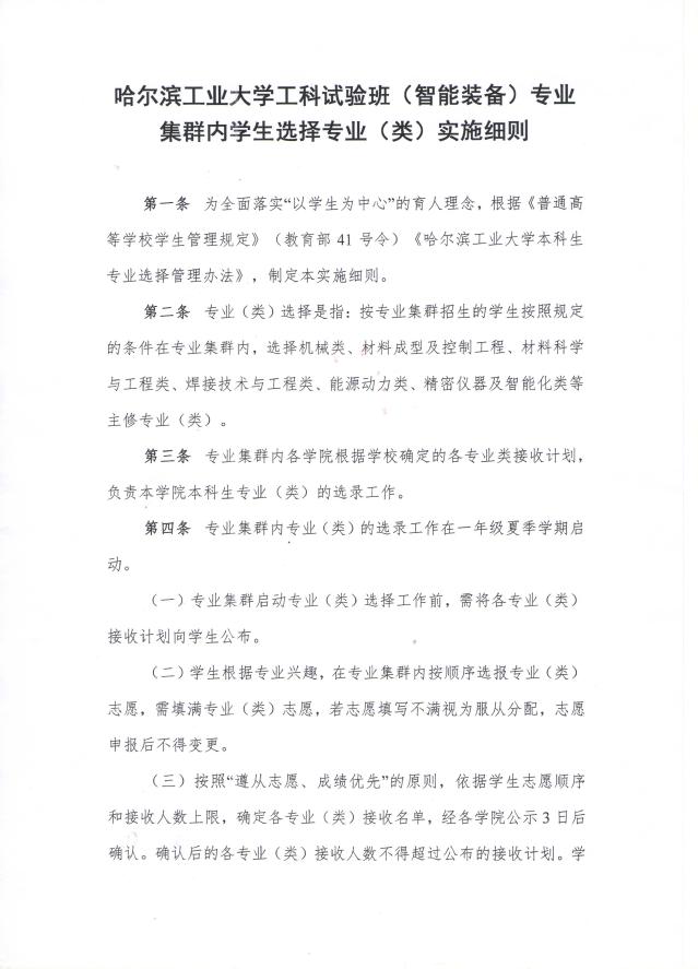 中文字幕av 工科试验班(智能装备)专业集群内学生选择专业(类)实施细则