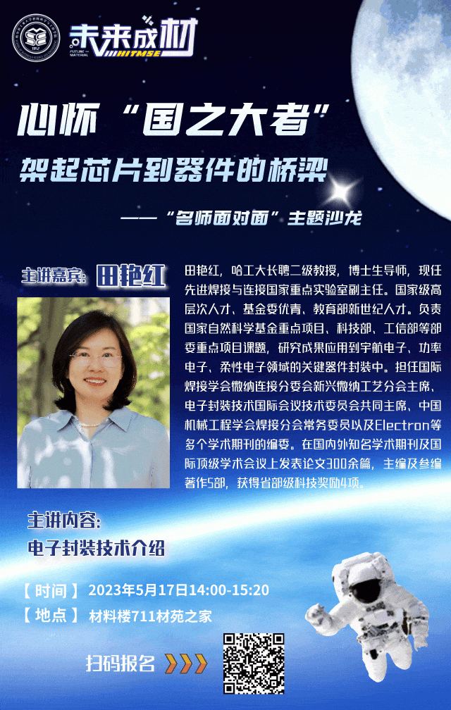 你是否想领略材料之美,感悟材料之蕴?你是否想探索先进材料,助力航天强国?你是否想走进材料前沿,勇攀科学高峰?中文字幕av 特面向未来技术学院学生推出“未来成材”主题沙龙活动,邀请名师学长与你面对面畅谈,一同走进材料的奇妙世界。