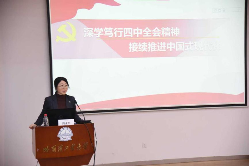 闫金红围绕“深学笃行四中全会精神 接续推进中国式现代化”这一主题,结合我国发展环境面临的深刻复杂变化,系统解读了四中全会的核心要义与战略部署,深刻阐释了其与推进中国式现代化的内在关联与实践路径。本次报告通过对四中全会精神全面系统的解读,引导学院师生对中国式现代化这一重大历史使命的理解更加透彻深入,对自身肩负的职责更加清晰坚定。